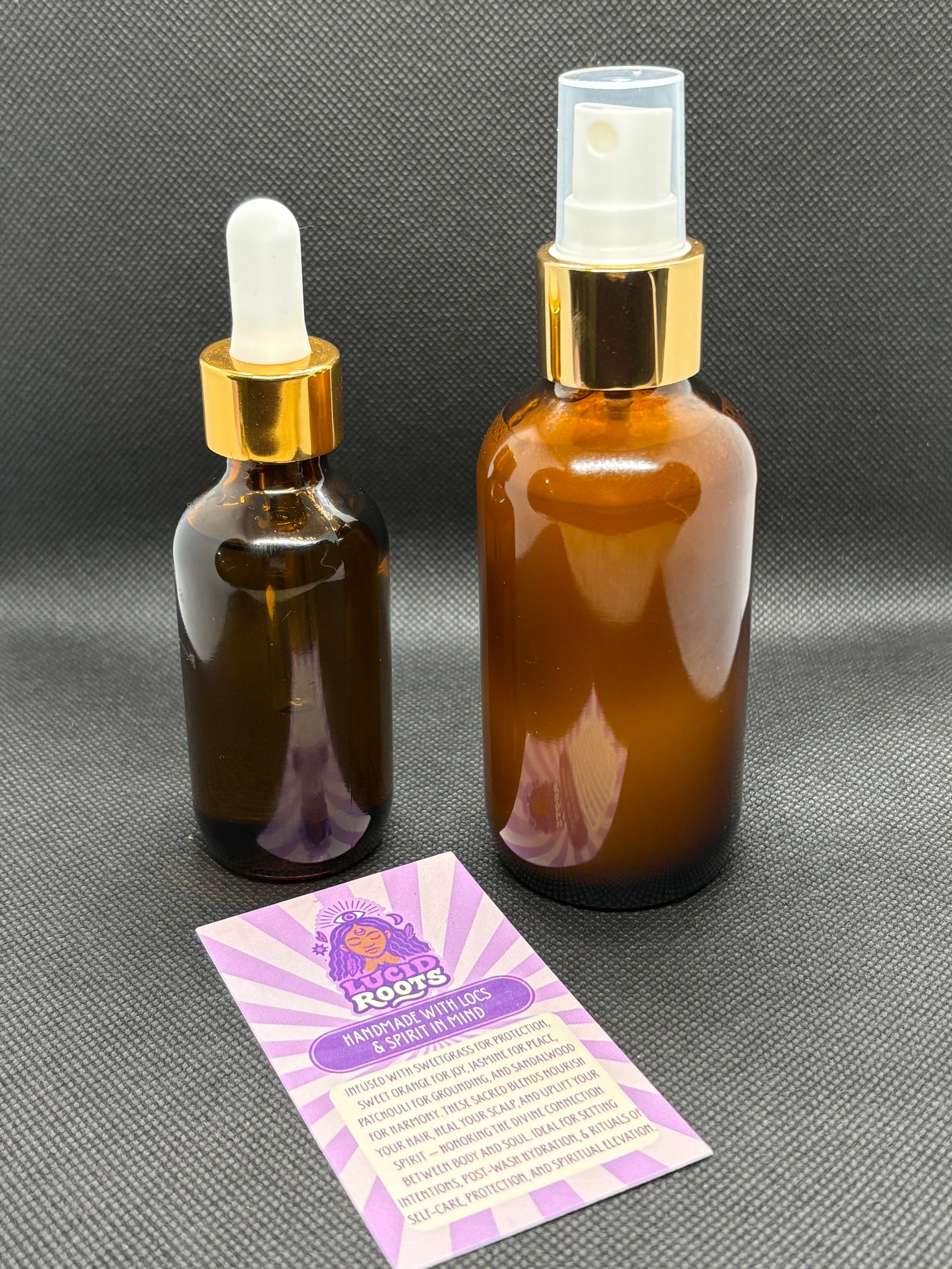 Mojo Mist is first and foremost a hydrating, moisturizing & growth stimulating Loc spray that is non-sticky, doesn’t build up, and does not interact with holding products such as loc gels. All ingredients are natural and serve dual purposes in both hair care and spiritual wellbeing.